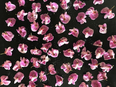 Encore une recherche internet, et mon choix s'est porté sur des fleurs cristallisées. C'est extrêmement simple à faire, et en plus un effet waouh garanti! En plus, elles sont vraiment délicieuses!