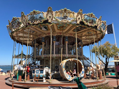 La balade commence à la jetée Pierre Lataillade qui borde la plage de centre ville d'Arcachon par l'est. Elle est connue pour son carrousel de chevaux de bois, plein de nostalgie. Passage obligé avec les enfants.