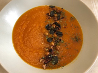 Ah la soupe de citrouille... Elle marque définitivement l'arrivée de l'automne, avec sa belle couleur orangée ! Qu'elle est réconfortante par les premières soirées fraiches et parfois humides. Qu'elle fait du bien dans nos assiettes. Elle est toujours bien appréciée par nos hôtes, surtout qu'en début d'automne, ils peuvent les voir, encore présentes dans notre potager 😊.